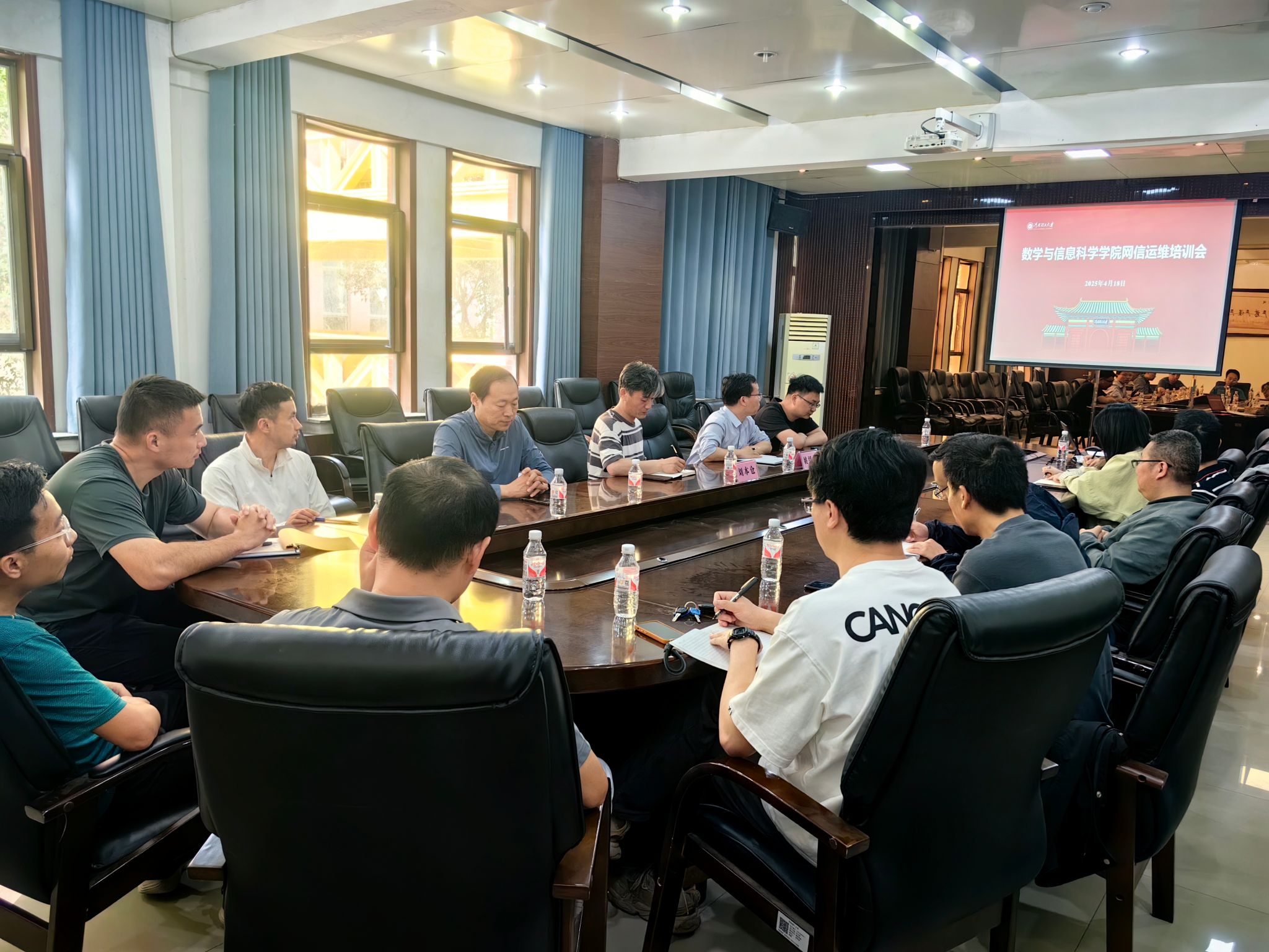 4月18日,信息化建设与管理中心走进数信学院,开展"信息素养提升及网信服务走进学院"系列活动第三站工作。信息化建设与管理中心副主任刘本仓带队,信管中心各科室人员参加。数信学院副院长姚绍文,系部教师代表及机关科室工作人员参加了此次活动。